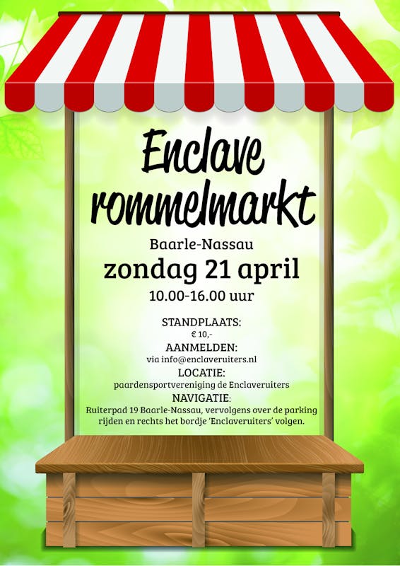 Reserveer een plaats op onze Enclaverommelmarkt op zondag 21 april om uw spullen te verkopen!