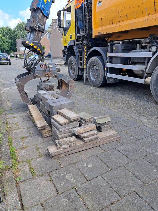 - Alleen tegels, klinkers of andere verharding worden opgehaald, géén ander afval.