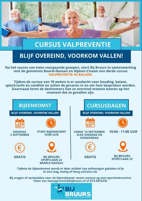 Wist u dat vallen een van de meest voorkomende oorzaken van letsel is bij ouderen? Wij nodigen u van harte uit voor en informatieve bijeenkomst over valpreventie.