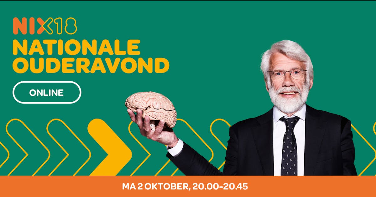 In zo’n drie kwartier nemen we je online mee in het puberbrein en krijg je concrete tips en handvatten. Dat doen we samen met neuropsycholoog Erik Scherder, Ninette van Hasselt van het Trimbos Instituut en ouderexperts van Tishiergeenhotel.nl. De Nationale Ouderavond NIX18 is een initiatief van het ministerie van VWS samen met NIX18-partners.