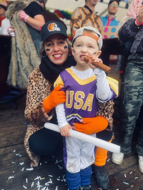 "Hierbij mijn leukste carnavalsfoto van dit jaar! Samen optocht kijken met mijn grootste vriend!❤️❤️❤️jong geleerd is oud gedaan! Juul samen met omi op de foto optocht kijken bij feestje Baarle".