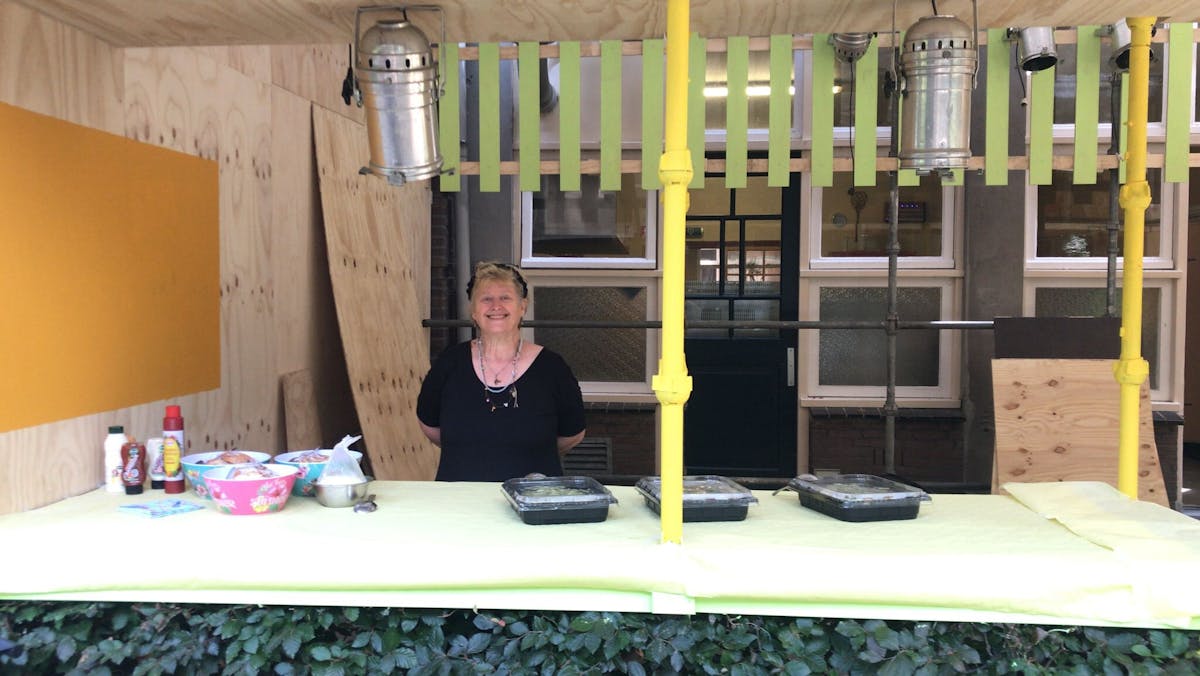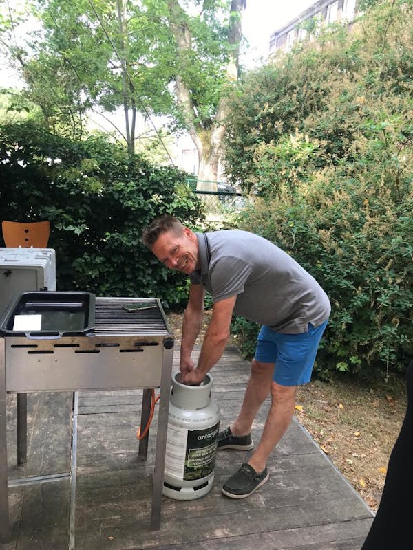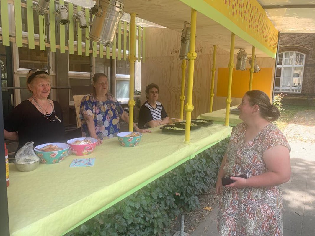 Het weer was iedereen zeer gunstig gezind. We konden met zijn allen buiten onder de schaduw van de luifel van cultuurcentrum Baarle vertoeven. Een waar bbq 'pop-up restaurant'.