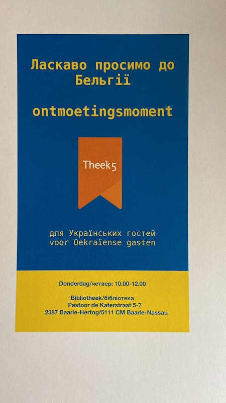 Iedere donderdag zijn mensen uit Oekraïne die de verschrikkelijke oorlog in hun land zijn ontvlucht welkom in Theek5 tussen 10:00 uur en 12:00 uur. De bibliotheek van onze dorpen. Zie de flyer bij dit bericht.