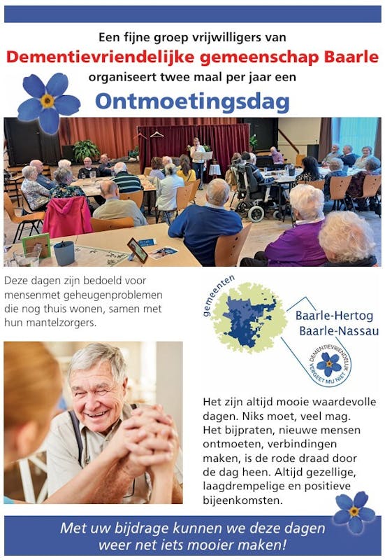 Wij willen graag mensen met geheugenproblemen en hun mantelzorgers de kans geven om een fijne dag te beleven. Een dag waarop ze kunnen ontspannen, plezier maken en nieuwe mensen ontmoeten. Maar dit kunnen we niet alleen. We hebben jouw hulp nodig!