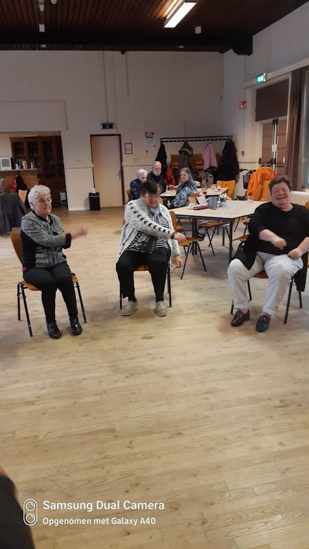 Gezellige sfeer met Staf van Aelst die de juiste muzieksnaar weet te raken. Het leuke is dat er een muzikale samenwerking is ontstaan met beweegsportcoach Floor. Twee vliegen in een klap zeggen we dan.