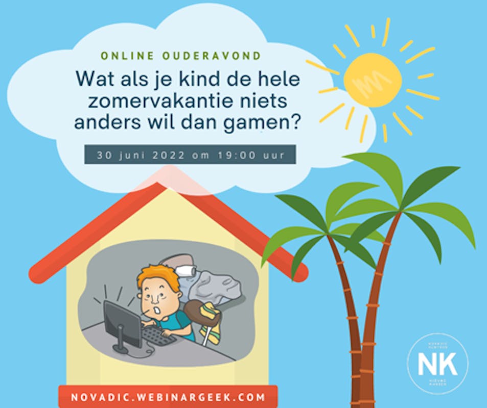De zomervakantie is een lastige periode voor (risico) gamers omdat structuur vanuit school en vrijetijdsbesteding wegvalt. Op 30 juni om 19:00 uur geven Novadic-Kentron Preventie en Helder Theater jou de tips & trucs om de regie te nemen deze zomervakantie. Een uur vol met informatie, grappige en herkenbare scenes en interactie mogelijkheden om jouw persoonlijke vragen te stellen.