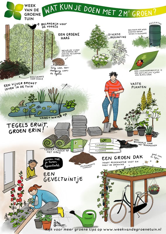 Een groene tuin: daar word je toch vrolijk van? Tijdens de Week van de Groene Tuin is er extra aandacht voor met verschillende groene én duurzame tips. Door het aanleggen van een groene of zelfs natuur ondersteunde tuin, draag je niet alleen bij aan het vergroten van de biodiversiteit, maar maak je het ook voor jezelf veel leuker.