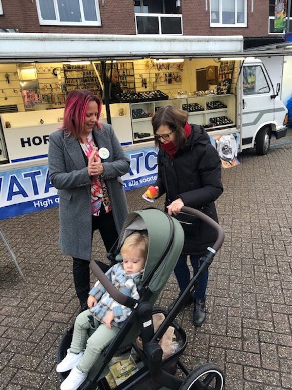Dinsdagochtend stond wethouder Janneke van de Laak een uurtje op de weekmarkt in Baarle-Nassau in het kader van de actie AppelBabbel die weer onderdeel uitmaakt van de campagne Allemaal Vitaal ter bevordering van een gezonde leefstijl. De appels (en bijbehorende buttons) vonden gretig aftrek en er ontstonden mooie ‘babbels’ over de gezondheid van de ontvangers van de appels. Niet verrassend bleek die gezondheid voor de een prima in orde en kon die voor een ander wel wat beter. Morgenmiddag (woensdag 23 november) bezoekt de wethouder ook de weekmarkt in Ulicoten.