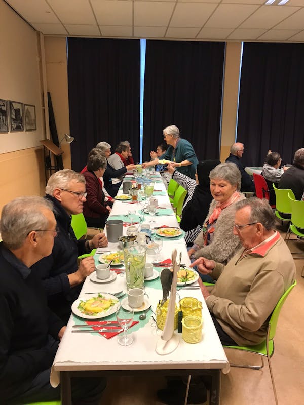 De laatste lunchclub van het jaar 2022 werd afgesloten in kerststijl. Onze vrijwilligsters Nel Kanters, Marjolein Moelands, Marianne van Drunen en Anja Leuris zorgden voor een mooie aankleding en een verrassende lunch. Zo heerlijk dat onze gasten het gewone licht toch aan wilden om goed te kunnen zien wat ze precies geserveerd kregen😉. Maar niets dan lof en complimenten! Naast een heerlijke lunch maken onze vrijwilligers altijd tijd voor een (verbindend) praatje. Het was een warm & gezellig samenzijn.
